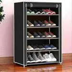 Dozzer 5-Shelves Shoe Rack/Multipurpose Storage Rack with Dustproof Cover (Metal Pipes, Non Woven Fabric, Plastic Connector) For Home & Office. (Need to Be Assemble - DIY) Black