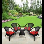 OMCCO 4+1 Outdoor Indoor Patio Furniture Sets Rattan Chair Patio Set Wicker Conversation Set Poolside Lawn Chairs Swing Area Balcony Outdoor Garden Furniture (Black and Red)
