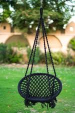 Patiofy Cotton Black Round Swing Chair with Hanging Kit, Swing for Home, Jhula