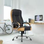 Roar Wood High Back Black & Tan Combination Leatherette Office Chair