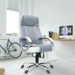 Roar Wood High Back Grey & White Combination Leatherette Office Executive Revolving Chair