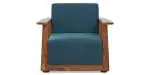 Urban Ladder Serra Wooden Sofa - Teak Finish (Colonial Blue) (Sofa Material : Fabric; Seater : 1)