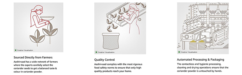 - AASHIRVAAD CORIANDER POWDER: It is made using a 4-step advantage process to ensure high-quality coriander powder