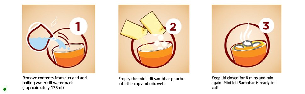 - INSTANT IDLI SAMBAR: No cooking or preparation is required. Just add boiling water, stir and wait for 8 minutes