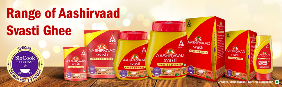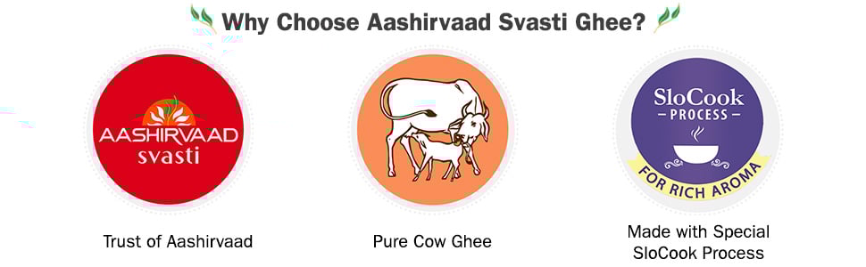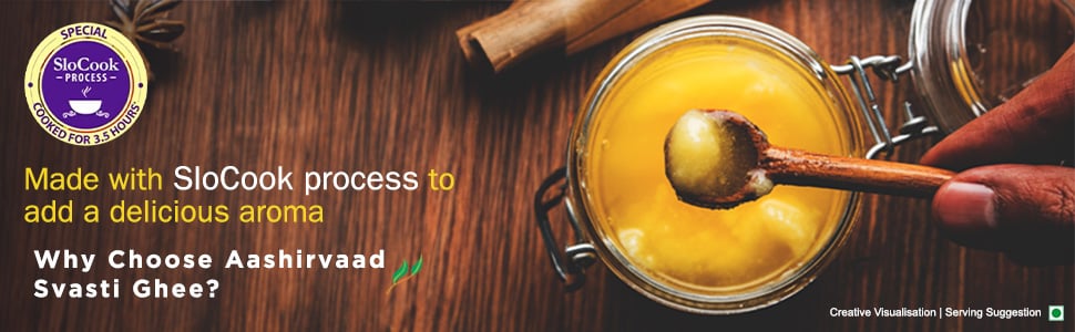 - Aashirvaad Svasti Pure Cow Ghee: It is a premium ghee made with a special SloCook process