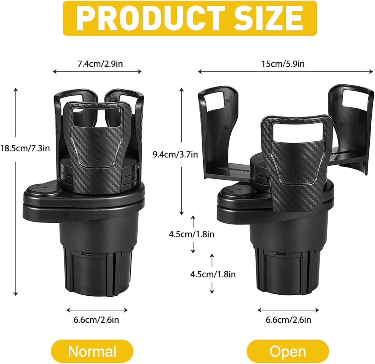 - Cup Holder Extender - Expands to fit various bottle sizes, from small cups to large containers.