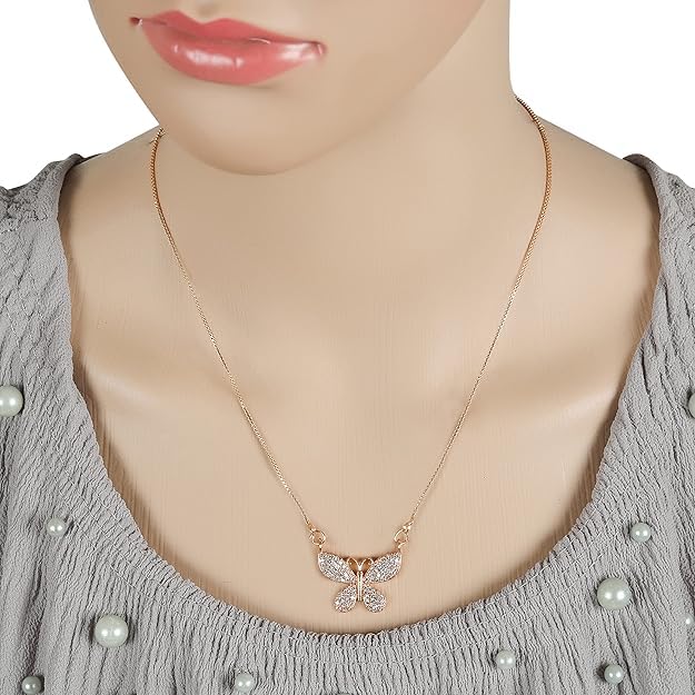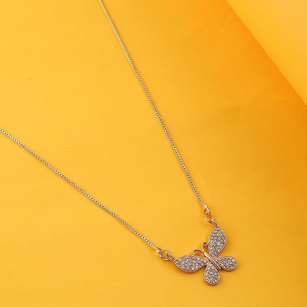 BCOMWALA JEWELS Diamond Butterfly Shape Necklace - Elegant Pendant with Sparkling Diamonds for Women, Stylish Butterfly Jewelry for Special Occasions and Daily Wear