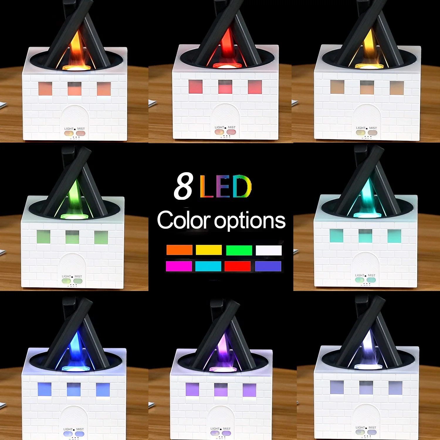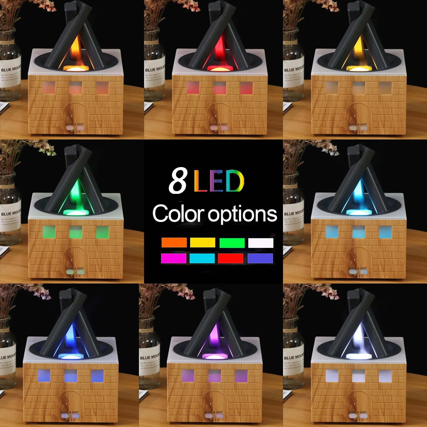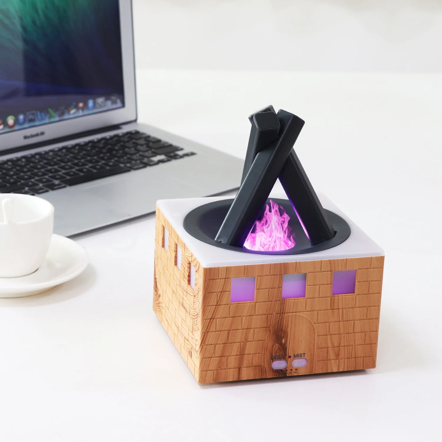 BEAUTY KINGDOM Led Night Lamp Humidifier Home Decorative Square Campfire Air Machine Essential Oils Cool Mist Auto Shut Off Flame Diffuser
