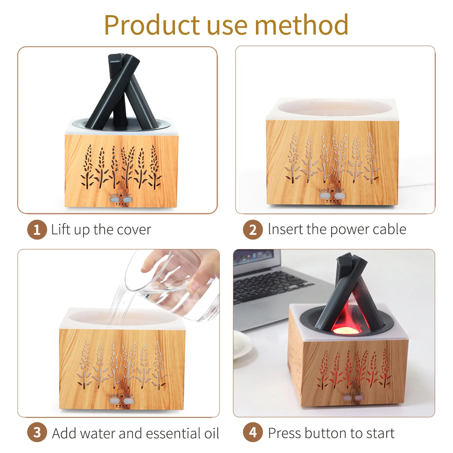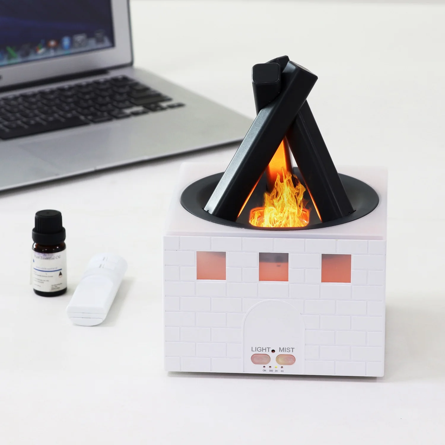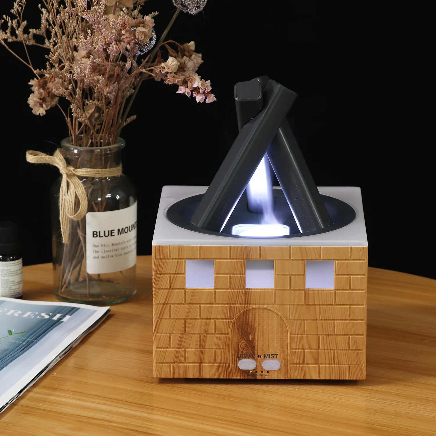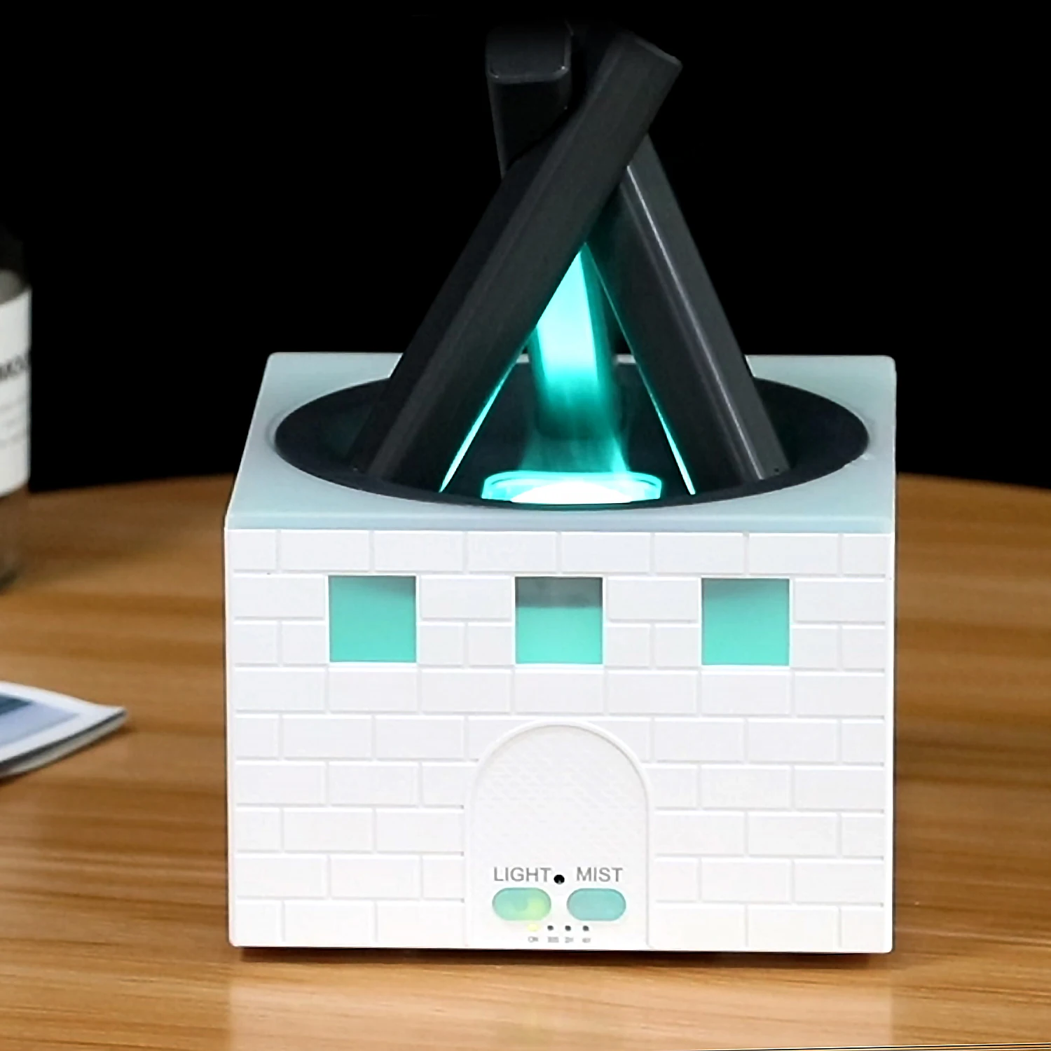 BEAUTY KINGDOM Led Night Lamp Humidifier Home Decorative Square Campfire Air Machine Essential Oils Cool Mist Auto Shut Off Flame Diffuser