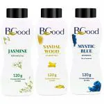 BGood | Body & Face Talcum Powder | Combo Pack of 3 - Mystic Blue, Jasmine, Sandal Wood - 120gm each
