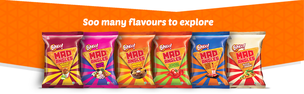 - BINGO! MAD ANGLES: Turn up the heat with the spicy Bingo! Mad Angles Very Peri Peri; an Indian snack with an international taste