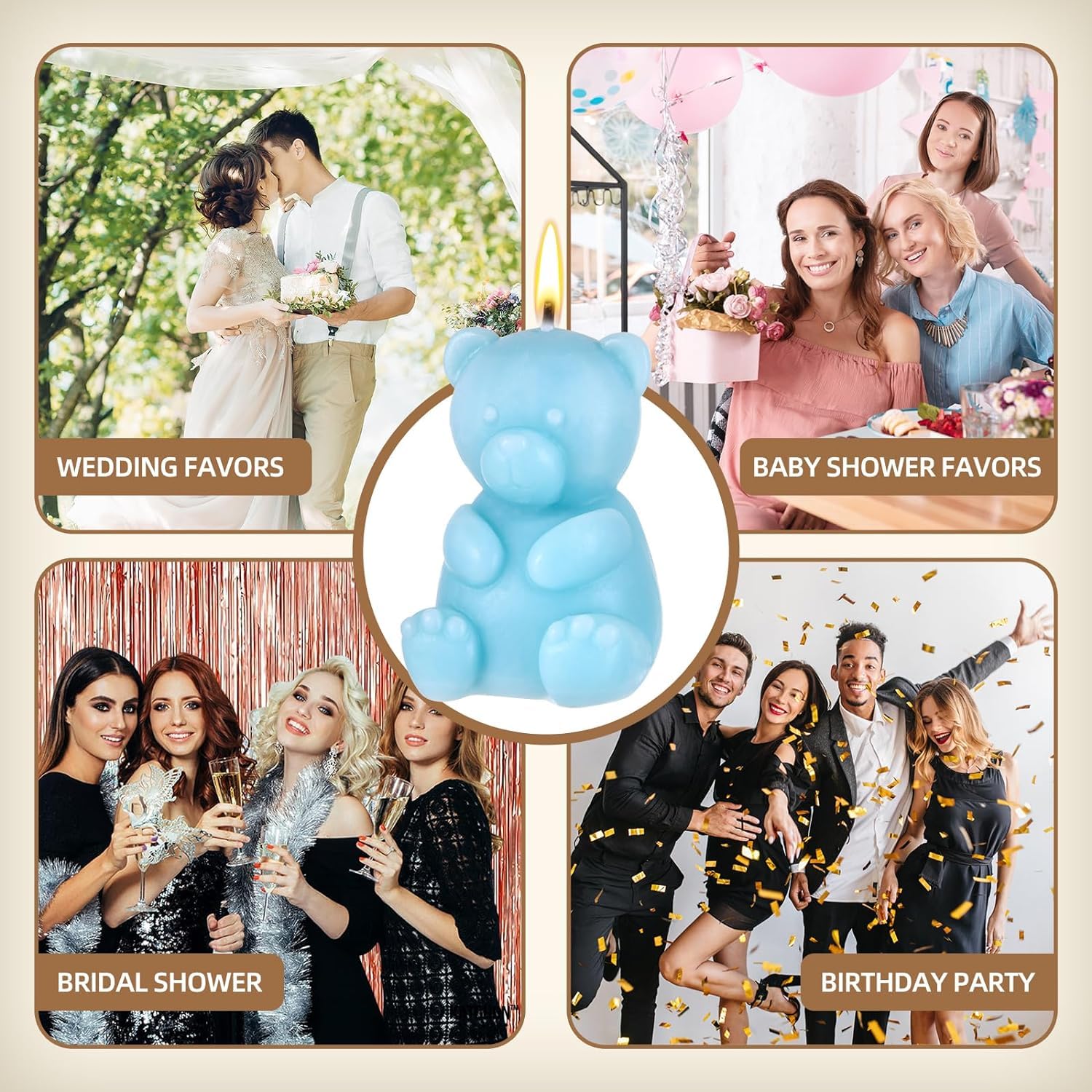 CANDLE_CABINETS BUY 5 GET 1 FREE - Cute Bear Candle, Wedding Gift Bear Candles, Baby Shower Bear Favors Candles, Handmade Teddy Candle for Home Party Supplies Birthday Decoration-Scented Candles- (Blue) -6 pcs