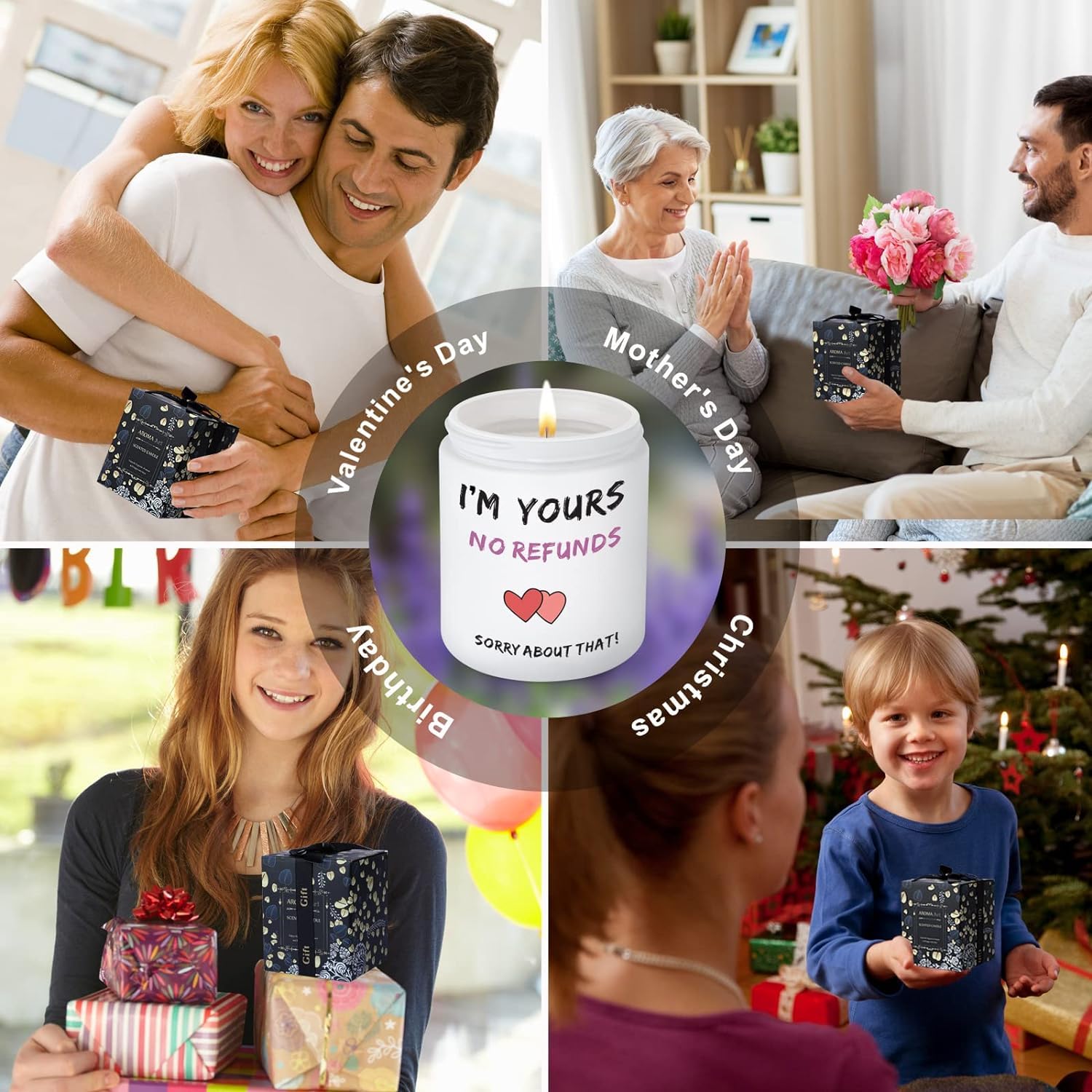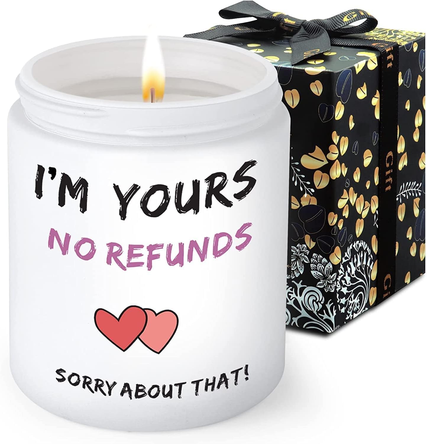 - Romantic Valentines Days Gifts for Women&Men: The funny love gifts with saying Im yours, no refunds, sorry about that candle, make it be a really great and unique gifts for women, wife, girlfriend, husband, boyfriend, mom, dad, him, her, best friend.