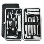DOCOSS-19 IN 1 Stainless Steel Manicure Kit Nail Cutter For Men Women Manicure Pedicure Kit With Grooming Kit , Acne needle ,Nail Filer Kit , Nail Cutter Set With Leather Case