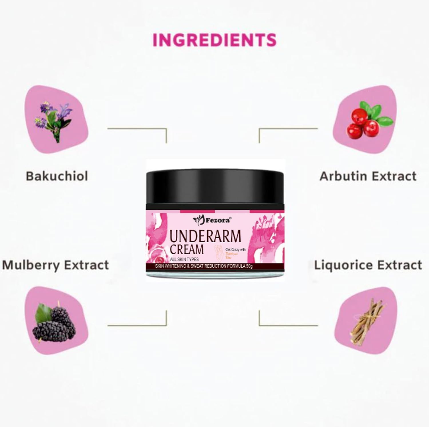 Fezora Underarm Cream & Sweat Reduction Formula Brightening & Moisturizing Cream for Dark Underarms, Neck & Sensitive Areas PACK OF 3