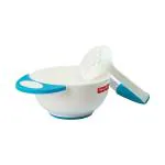 - Smart design firm-grip masher that easily mash cooked or steamed veggies and fruits and a masher bowl that has an inner ridge for easy mashing and non-slip outer bottom part with finger grip holder