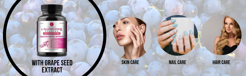 - L-Glutathion uses high end grape seed, vitamin E&C and extracts