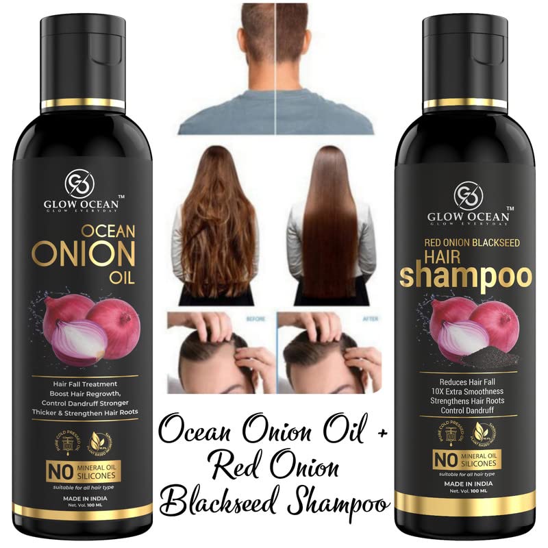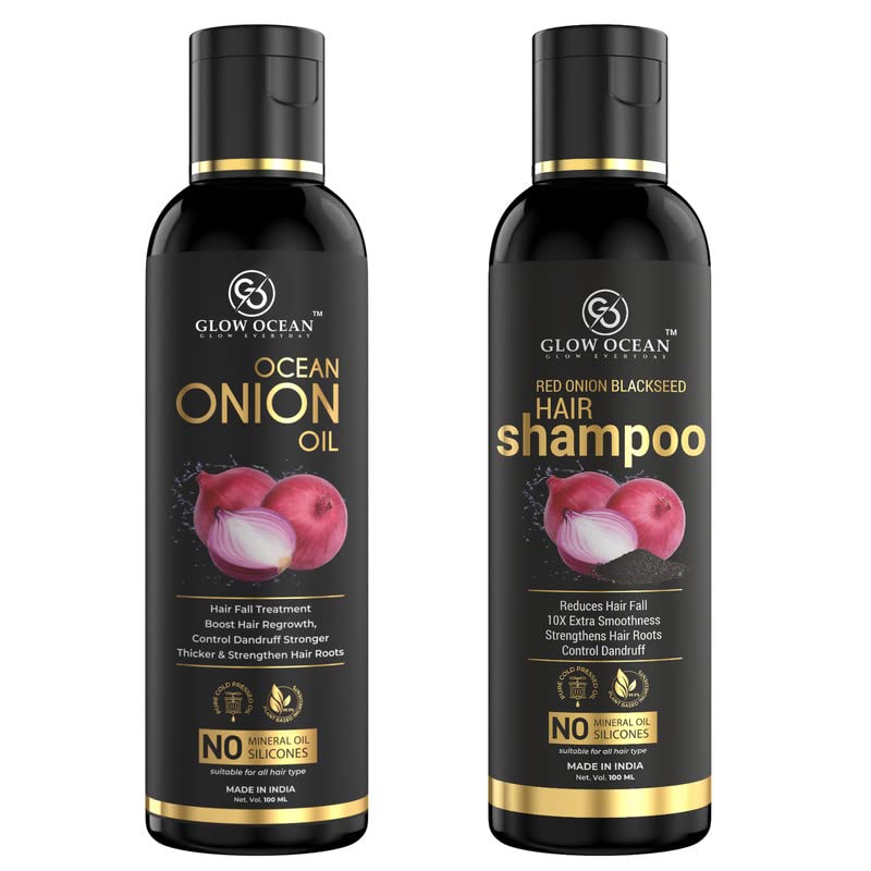 GLOW OCEAN - GLOW EVERYDAY Onion Hair Oil and Red Onion Black Seed Hair Shampoo - 100 ML (Pack of 2)