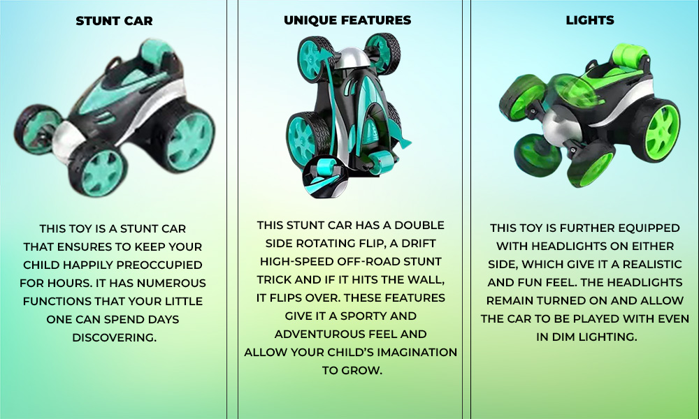 - This Remote Control Car Is Easy To Flip, Turn And Perform All Kinds Of Cool Stunt Action While Moving Forward, Backward, Turning To The Left, Turn To The Right. Sound Support- No