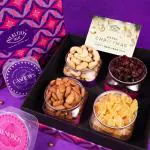 - Includes :Roasted Cashew 120 gm, Roasted California Almonds 120 gm, Chatpati Cranberry 110 gm, Dried mango 110 gm, Christmas and New Year Greeting Card 1 uni