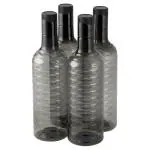 Home One Wave Black Plastic Water Bottle 1 L (Set of 4)