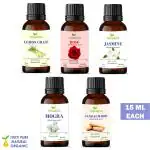 Homeda Aroma Diffuser Oil for Home Fragrance (Lemon Grass, Rose, Jasmine, Sandalwood, Mogra Essential Oil), Aroma Oil, Defuser Humidifier Oil, 15ml Each - Set of 5