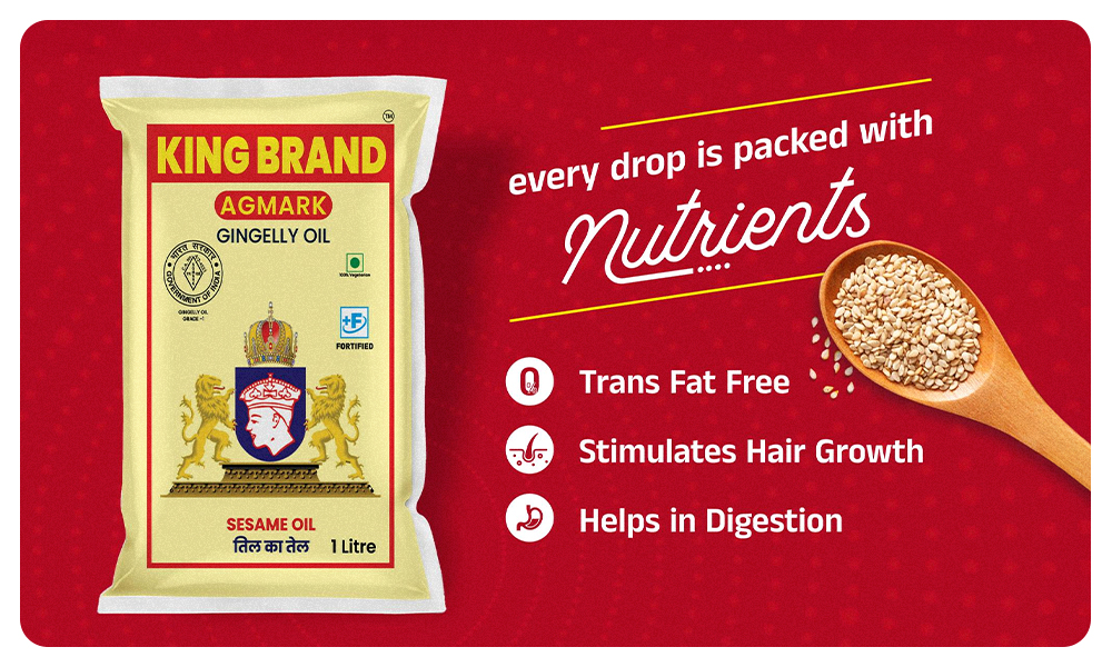 King BRAND, Sesame Oil Gingelly/Sesame Oil 2 Litre Pouch (Each 1 Litre)