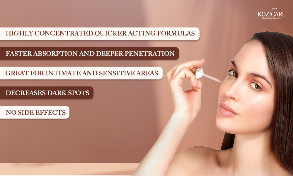 - Advanced skin lightening care- Kozicare skin lightening serum formula works deeply in the skin to whiten and reduce wrinkles, dark spots, and hyperpigmentation, scars, discoloration, brightening and smoother skin tone.