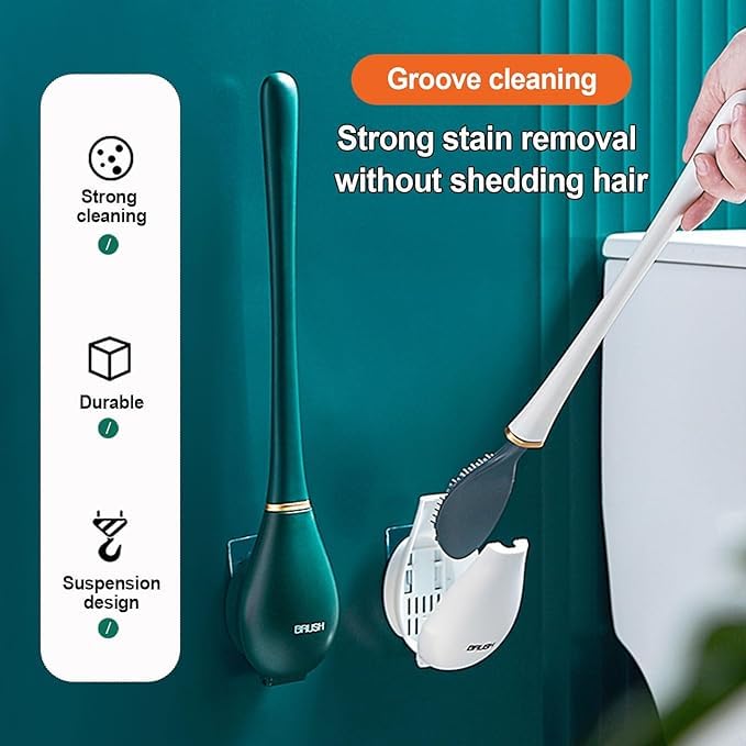 LADUBA ENTERPRISE Silicone Water Drop Toilet Brush and Holder Set, Wall Mounted Deep Cleaning Toilet Bowl Brush for Bathroom Toilet Brush and Holder Set | Toilet Cleaning Brush | Gap Cleaning Brush | Bathroom Cleaning Brush | Cleaning Brush | 1 PCS
