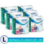lyfcare Adult Pull -Up Pants Diapers ,Large-60 Pieces (Pack Of 6, Each 10 Pieces) , Waist Size (75-100 Cm | 30 -39 Inch)