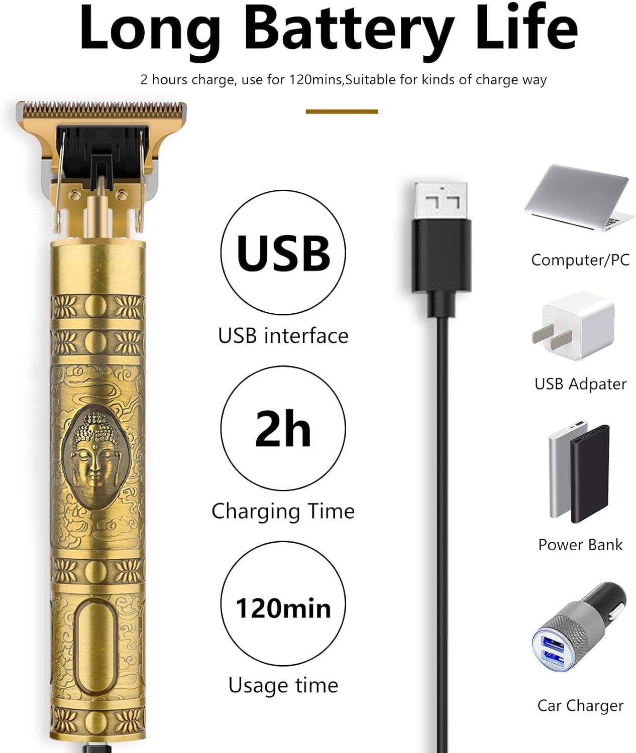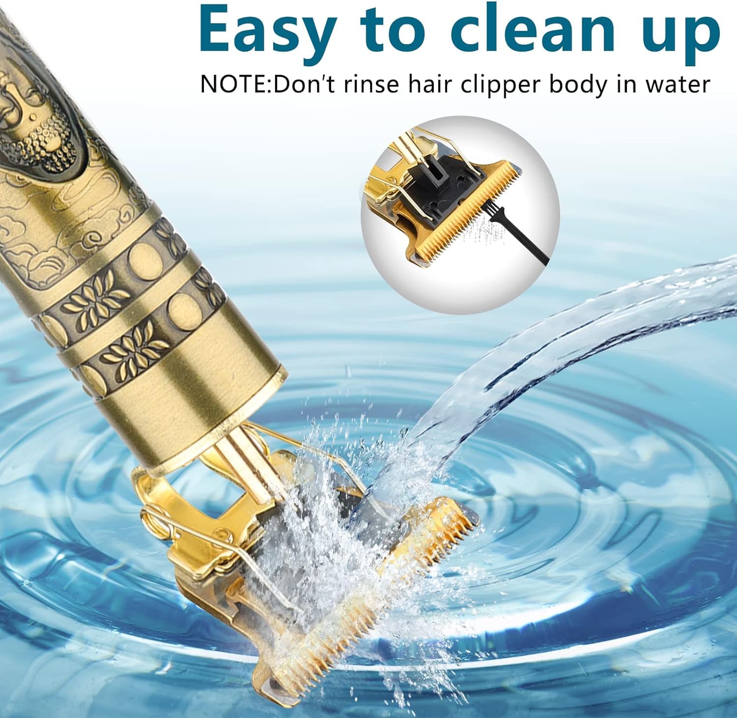 MISUHROBIR Hair Trimmer For Men Buddha Style Trimmer, professional clipper, adjustable blade shaver men, retro oil head close cut trimming machine clipper and precise rechargeable cordless clippers cutting kit with 4 t-blade(Golden)
