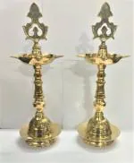 NAAYAGI - Traditional Brass Oil Lamp / Porai Kuthuvilakku , Porai vilakku, kumbakonam kuthuvilakku - PORAI VILAKKU small size - 30 cm high ( 12 inch ) high, set of 2 pieces