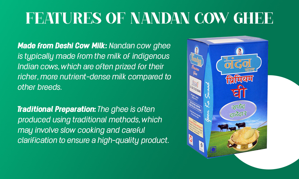 - Health Benefits: Ghee is known for its numerous health benefits. It's a source of healthy fats, essential vitamins, and antioxidants, making it a perfect addition to your balanced diet.