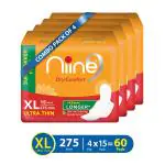 Niine Dry Comfort Ultra Thin Sanitary Pads for women (Pack of 4) 60 Pads with Fluid Lock Gel Technology