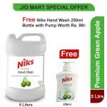 Niks Premium Hand Wash Liquid Gel - 5 Liters Refill Pack Green Apple ( FREE Green Apple hand wash 250ml)