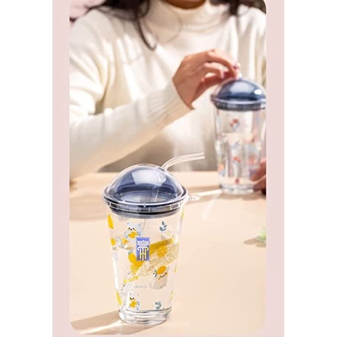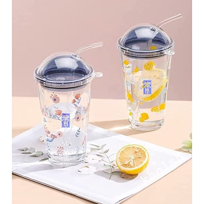 Nimika Sipper Bottle Love Glass with Lid Good-Looking Clear Glass Cup Straws Cup Glass Sipper Bottles 470 ML (Pack Of 2)