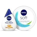 Nivea Soft Light Cream 300 ml+ Nivea Milk Delight Honey Face Wash 100ml Combo