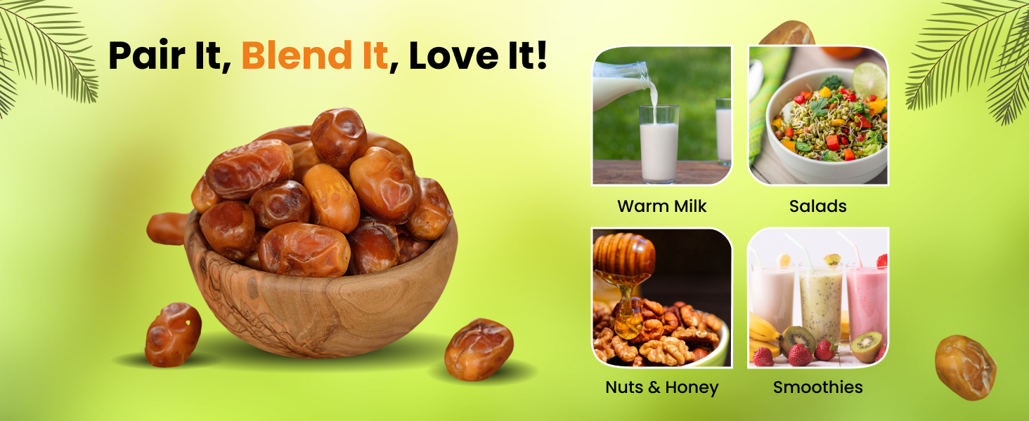 - Dates are highly rich in soluble fiber, which promotes regular bowel movements and healthy digestion.