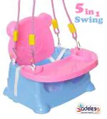 Odelee Pink 5 in 1 Baby Booster Plastic Seat Cum Swing with Feeding Tray