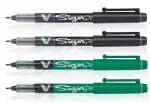 Pilot V Sign Pen | Tip Size - 2 MM | Fiber Soft Tip | Ink Colour - 3 Black and 3 Green | Pack of 6