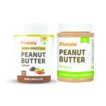 Pintola Combo Of All Natural Peanut Butter (Crunchy) (1kg) & Pintola HIGH Protein Peanut Butter (Dark Chocolate) (Creamy, 510g) | 30% Protein | High Fibre | NO Salt
