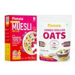 Pintola Combo Of Fruit & Nut Muesli with 28% Millet & 68% Wholegrains (400g) & Oats 400g, 100% JUMBO Rolled Oats, High Fibre & Protein Diet, Healthy Breakfast cereal, No added sugar, No Preservative