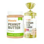 Pintola Combo Of Organic Wholegrain Brown Rice Cakes 130g (All Natural, Unsalted) (Pack of 1) + Pintola All Natural Peanut Butter (Extra Crunchy) (Unsweetened) (1kg)
