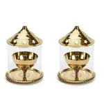 pujaNpujari Golden Brass Akhand Diya with Glass cover (Pack Of 2)