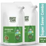 PureCult Dishwash Liquid| Kids & Pet Safe Non toxic & Anti-bacterial Utensil Cleaner| Removes Grease and Tough Stains for Sparkling Kitchenware| Eco-Friendly| Sweet Orange and Lemon Combo Essential Oils (750 ML x 2)