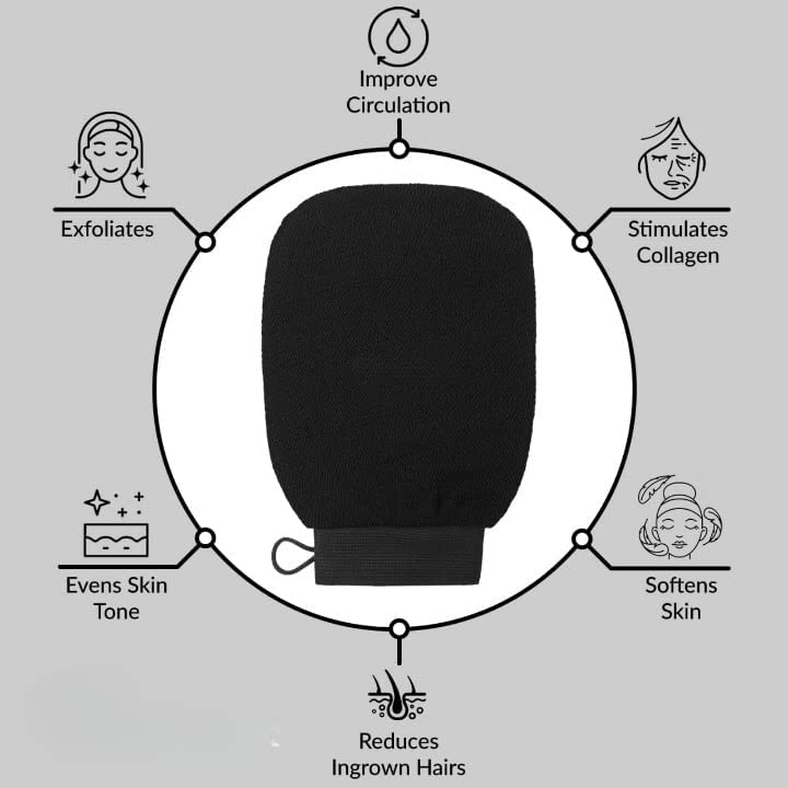 - FOR HEALTHY GLOWING SKIN - This double layered exfoliating mitt is a must for anyone who wants their skin to glisten and glow. The best part? It helps promote circulation, which means that you're stimulating collagen production while helping fight off pos