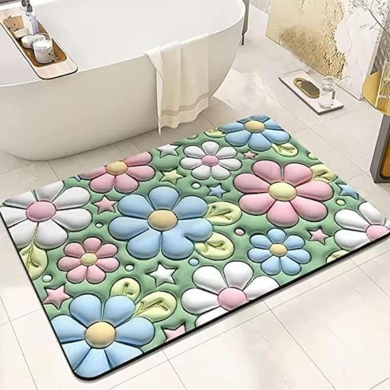 - Super Absorbent: Made from diatomite material, this mat quickly absorbs moisture, keeping your floors dry and reducing slip hazards after showers or baths.
