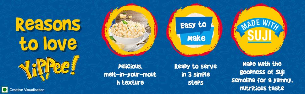 - Made with 100% Suji (Semolina): A nutritious alternative to regular pasta made with maida.