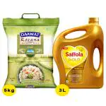 Saffola Gold Rice Bran And Corn Based Blended Oil 3 L + Daawat Rozana Gold Basmati Rice 5 kg