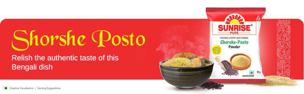- SUNRISE SHORSHE POSTO – A traditional spice mix that is used to make authentic and popular Bengali dishes